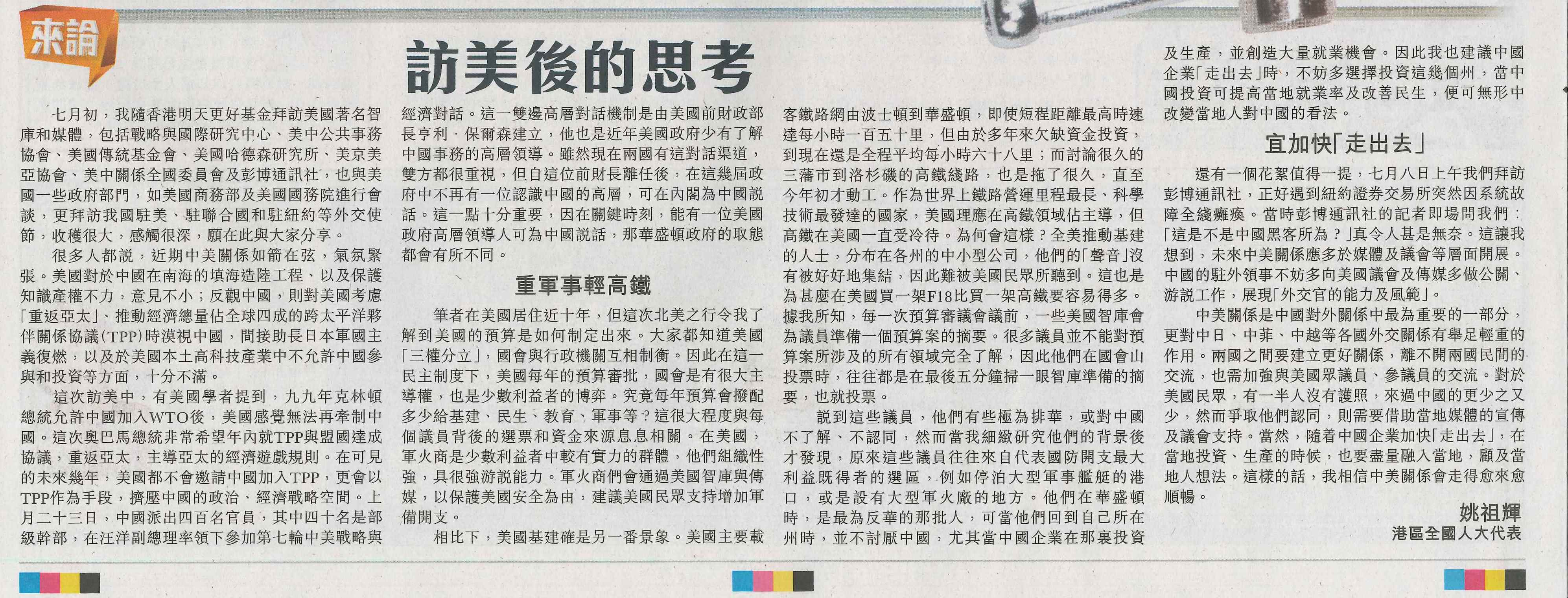 訪美後的思考