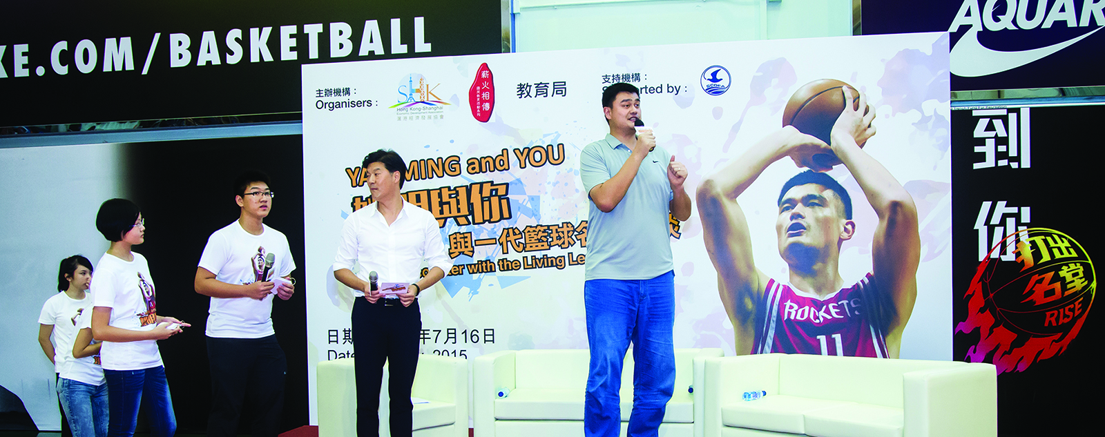 2014年及2015年,我曾先後於上海復旦大學及香港修頓球場,舉辦《姚明與你》活動,邀請香港青少年朋友們與姚明先生一起真情對話,一眾大、中學生們更在籃球架下與姚明砌磋球技。